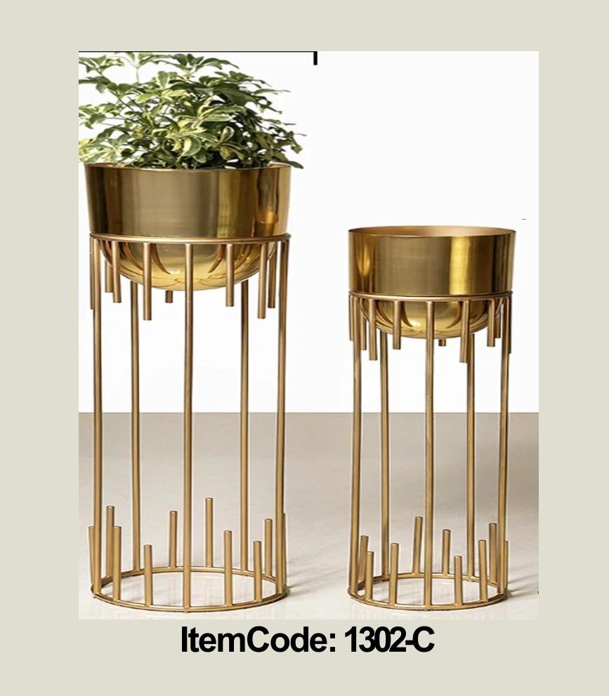 Golden Metal Planter Set With Pot For Home Decor Set Of – 2